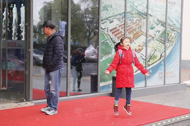 本报记者路遇少年日报双语学记团的小记者。几位小朋友见到纷飞白雪难抑喜色,纷纷与雪花互动,为今年上海冬天的首轮降雪增添了一道不一样的风光。雪景虽美,但也请各位朋友在欣赏雪景的同时,外出也要注意身体保暖,穿好秋裤,千万别着凉哦。