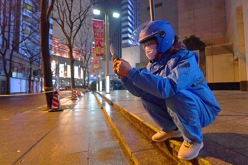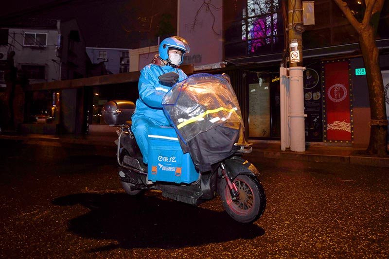 往年春节期间都是外卖配送淡季,本地居民在家中烧饭做菜自给自足,加上在这次新型冠状病毒的阴霾笼罩之下,对外卖行业可谓是雪上加霜。即便如此,在春节期间也仍有不少外卖配送员游走在上海的大街小巷,保障着上海市民足不出户的饮食需求。