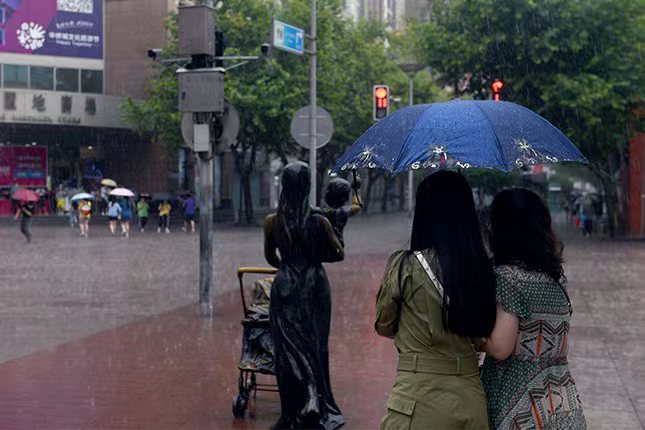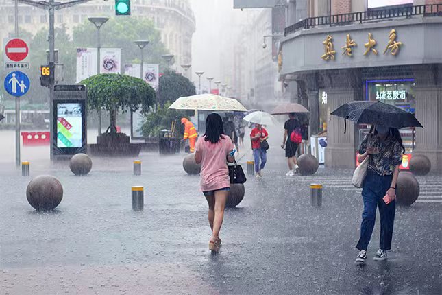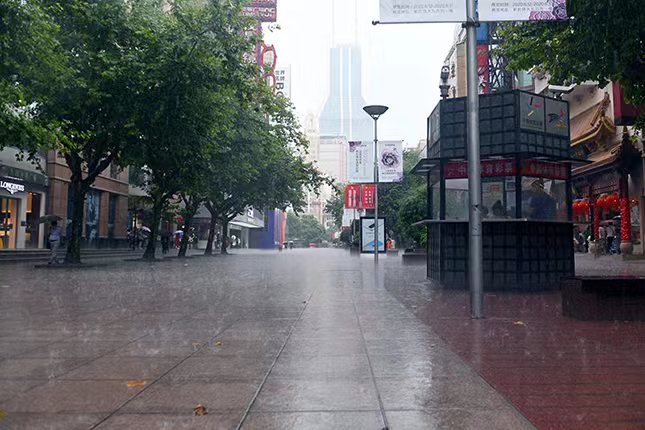 ▲暴雨中的南京路步行街。