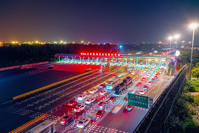 随着国庆中秋双节的来临,9月30日午后的G1503高东收费口往崇明方向逐步迎来大客流。