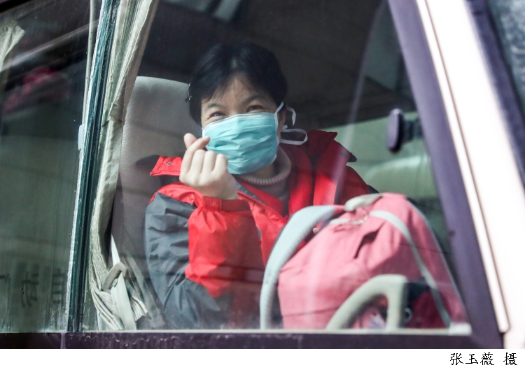 出发当日的清晨,在北京大学人民医院的门诊楼前,110名医务人员举行“出征仪式”。17年前,这里曾经举行过抗击非典复诊仪式,如今,这里有110名医务人员誓师出发,“武汉加油”“人民必胜”的声音响彻天空。这支队伍也是北京大学人民医院为增援武汉疫情防控派遣的第三支医疗队。