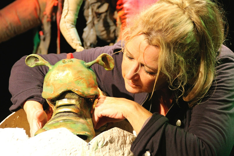 荷兰伊拉梵德木偶剧团演出的《带尾巴的蛋》充满戏剧性的对话,以及神奇魔幻式的怪诞情节,所有的对话和情节都是由操纵木偶的女演员伊拉梵德一个人完成的。