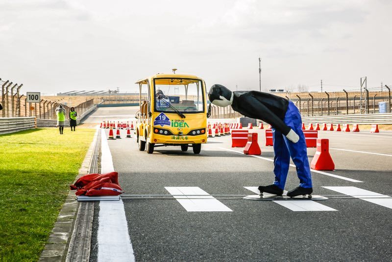 在此次大赛中,国家智能网联汽车(上海)试点示范区提供了符合国标的假人及非机动车场景,包括行人避让及非机动车避让,场景能够复原穿行马路等多种工况。