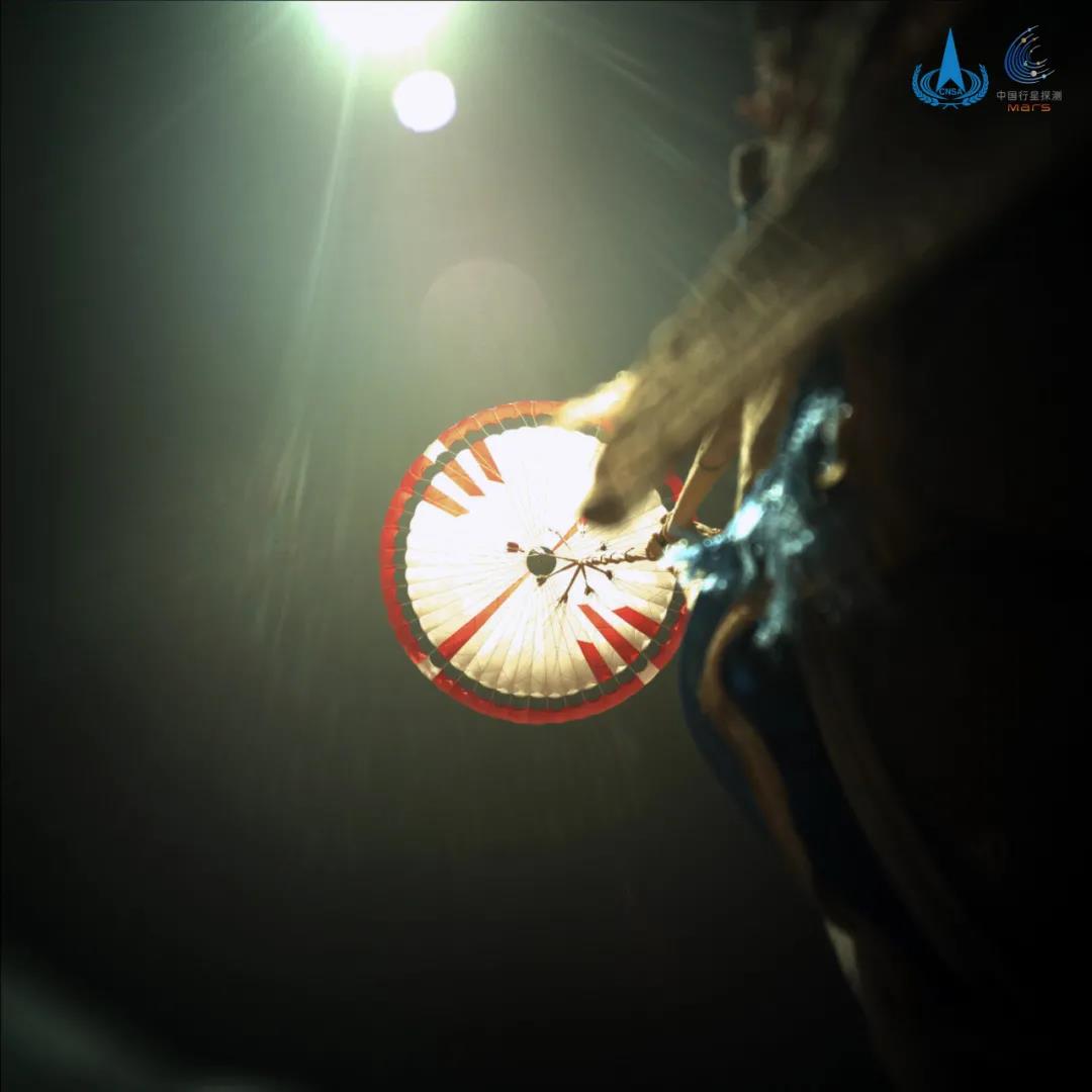 在接近和驶离过程中,火星车前、后避障相机也拍摄到了降落伞与背罩。