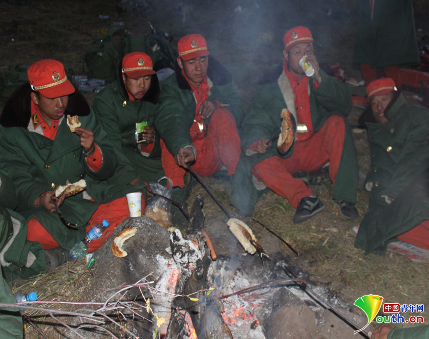 2011年9月13日新疆禾木大火,白立成和“战友们”连续作战28天才最终扑灭火灾。图为灭火作战的第17天,白立成正在补充给养。白立成供图