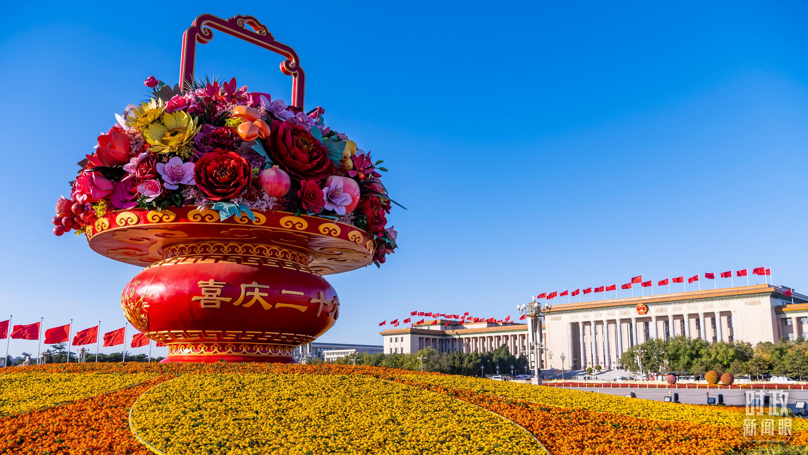 △ 北京,喜庆二十大主题花坛。(图/视觉中国)