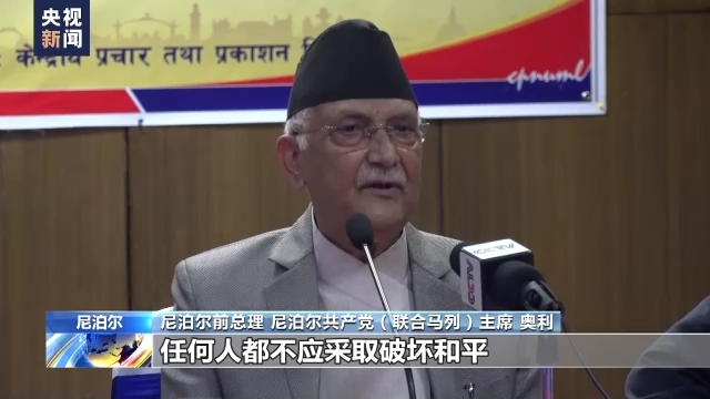 尼泊尔前总理 尼泊尔共产党(联合马列)主席 奥利:任何人都不能干涉他国内政,任何人都不应采取破坏和平,给和平施压的任何行为。我们希望邻国和平,需要全世界和平,违背和平的行径或者破坏未来和平的一切行为都不可取。