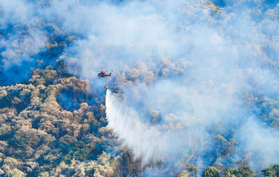 8月18日,一架救援直升机在重庆涪陵进行灭火作业。8月17日,重庆涪陵荔枝街道、江北街道所辖山林相继发生火灾。当地迅速组织力量赶赴现场扑救,及时疏散附近居民。
