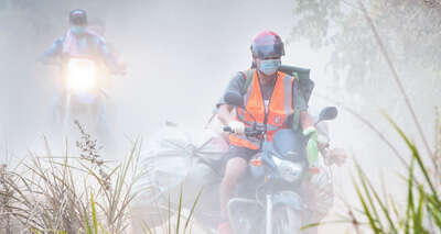 8月21日晚,北碚区歇马街道虎头山发生山火,山上要挖防火隔离带,一般车辆通行不便,只能通过摩托车运送物资。