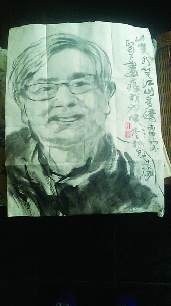 俗话说,三年不见,当刮目相待,何况我们已有十多年未见了。翻阅他送我的《梦境》画集,看着一幅一幅笔墨功底厚实、灵动,又独创新境的山水画及其书法作品,仿佛真把我带进了似幻似真的梦境之中。我不由疑问起来,这是十多年前刚由装帧设计转入国画创作的全根老友画的吗?坐在我身旁的陆全根,难道正是七十年前我交游的“淘气大王”陆全根吗?正是在这种似幻似真的情景下,我坚请他画一画自己,入围《百美图》。他说从未画过自己,被逼无奈,寄来了这幅写实功底厚实的肖像自画,右侧题款道:“山笑水笑,江山多娇,留下画痕,我也笑笑。”