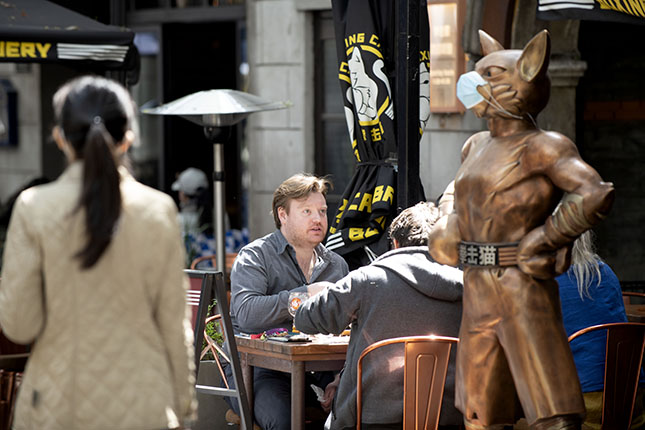 在境内外游客最爱的新天地,也是一幅人流攒动的景象,沿街餐厅的露天餐桌几乎客满。不少市民感慨:那个繁华热闹的上海又回来了!