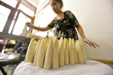 对于声名远扬的湖笔而言,这是制作的第一大工序,称为“水盆”,也是最关键的一道工序——并不神秘,也不复杂,至少看上去就是妇人们闲散地整理羊毛而已。然而,事实远比看上去复杂。