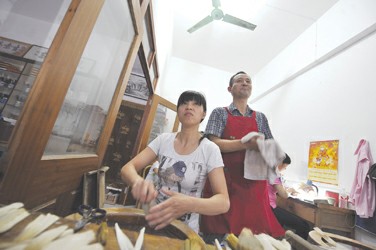 这个夫妻店里,忙前忙后的张梅清掌管着近20道工序,水盆前静坐不动的沈建英手中也有十多道工序。两人加在一起,也不及湖笔制作全套工序的三分之一。