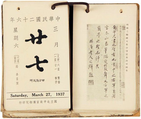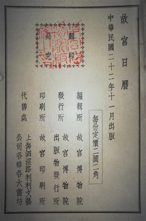 已出版了六年(出版时序是2009-2014年,日历时序是西历二〇一〇年-西历二〇一五年)的《故宫日历》,并非时下品,追溯其源,系由故宫前辈冯华先生1933年至1937年所编撰的“嫡系子孙”,当时“距离故宫博物院的成立还不满十年。尽管博物院尚在草创阶段,一无经验二缺经费,却已经具备了一个博物馆的方向与基本素质——那就是博物馆为国家公器的概念,换言之,就是服务公众为本,播扬文化为宗”。“旁系”则是台北故宫博物院于1970年代,曾依旧制选取院藏文物所编同名日历,两者都只持续了几年。2009年末,“故宫出版社(原紫禁城出版社)以一九三七年版为蓝本恢复出版《故宫日历》,标志着被遗忘经年(中断了七十多年)的它重又回来”。
