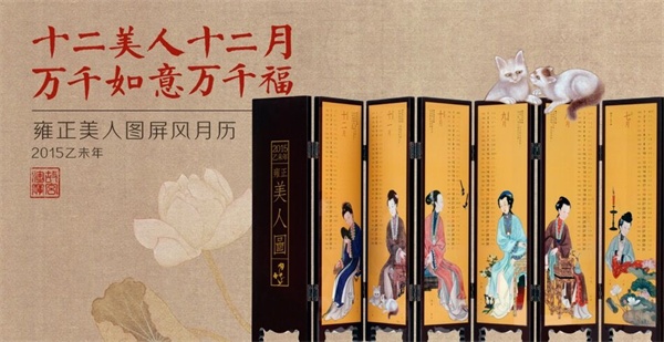 自从今年8月故宫博物院官方微信制作刊发了题为《雍正:感觉自己萌萌哒》(配图系《雍正行乐图》的动态版)之后,由于萌态可掬转发者众,非但雍正帝给人的感觉瞬间从多疑狠辣成功转型为“自信幽默萌萌哒教主”,一并使得向来属于“深宫大院”不敢窥究竟的故宫博物院也变得亲民起来,新媒体方面不甘示弱,故宫博物院3款iPad应用:《胤禛美人图》、《紫禁城祥瑞》和《皇帝的一天》,统一“萌萌哒”,寓教于乐,创意过人。与此相伴的衍生产品不断推出不断脱销,不光有文化衫常规产品,各类宫廷Q版娃娃,与时俱进的书签、手机壳等成交记录都相当可观。事实上,除了2015年度的《故宫日历》,故宫博物馆还制作有《2015年雍正十二美人图屏风月历》(2009年出版过平装版桌面日历《2010富贵平安又一年:雍正美人图》)和仿古奏折版《2015年雍正行乐图周历》,前者可当装饰物,后者除了日历功能外也还有记事功能,此两样在故宫淘宝官网现均已售罄下架,可见四爷除了卖萌还很会卖物喔!