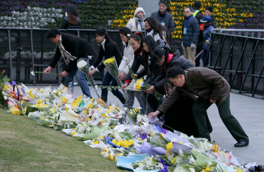 外滩拥挤踩踏事件发生一周来,已有大批上海市民自发前往外滩,祭奠遇难者,为伤者祈福。从1月1日起,陈毅广场前就堆满了市民献上的花束,还有不少人晚上赶来,点上一支蜡烛,为逝者祈祷。一位市民曾在花束的卡片上写道:“年轻的生命已逝,向他们致哀。生者的路还长,擦干眼泪还要前行。”