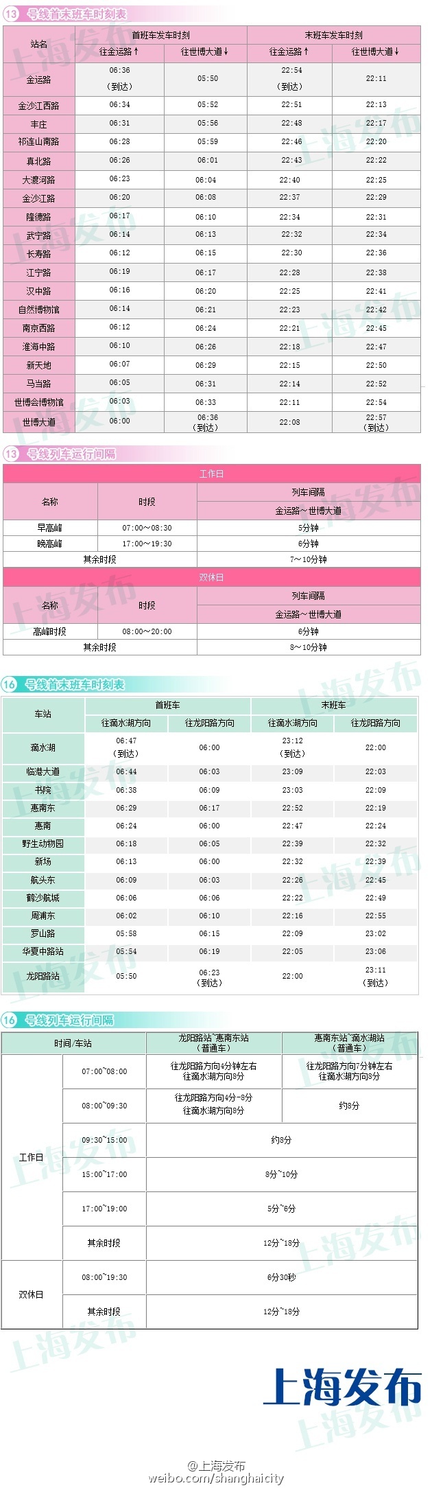上海地铁最新版时刻表:14条地铁线+磁悬浮
