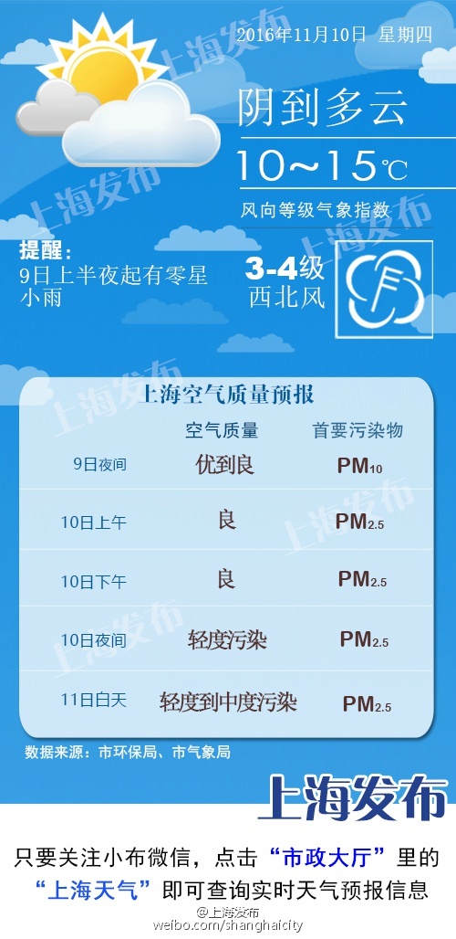 【明天最低温10度、后天9度,双休日略有升温】#天气预报#受冷空气影响,今天申城气温较低,最高温仅13.3度,预计今天上半夜起有零星小雨。明天阴到多云,最低温10度。后天更冷,仅为9度。直到双休日才略有升温:周六最低12度,周日13度,下周一14度。但昼夜温差较大,提醒筒子们谨防感冒哦~