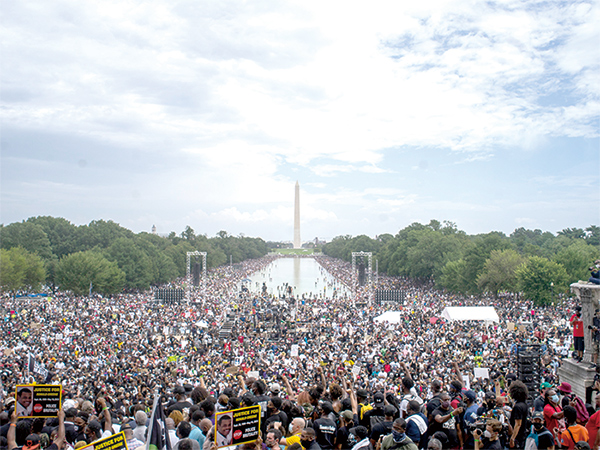 2020年8月28日,人们在美国首都华盛顿林肯纪念堂附近参加反种族歧视和暴力执法示威活动。 新华社发(阿兰 摄)