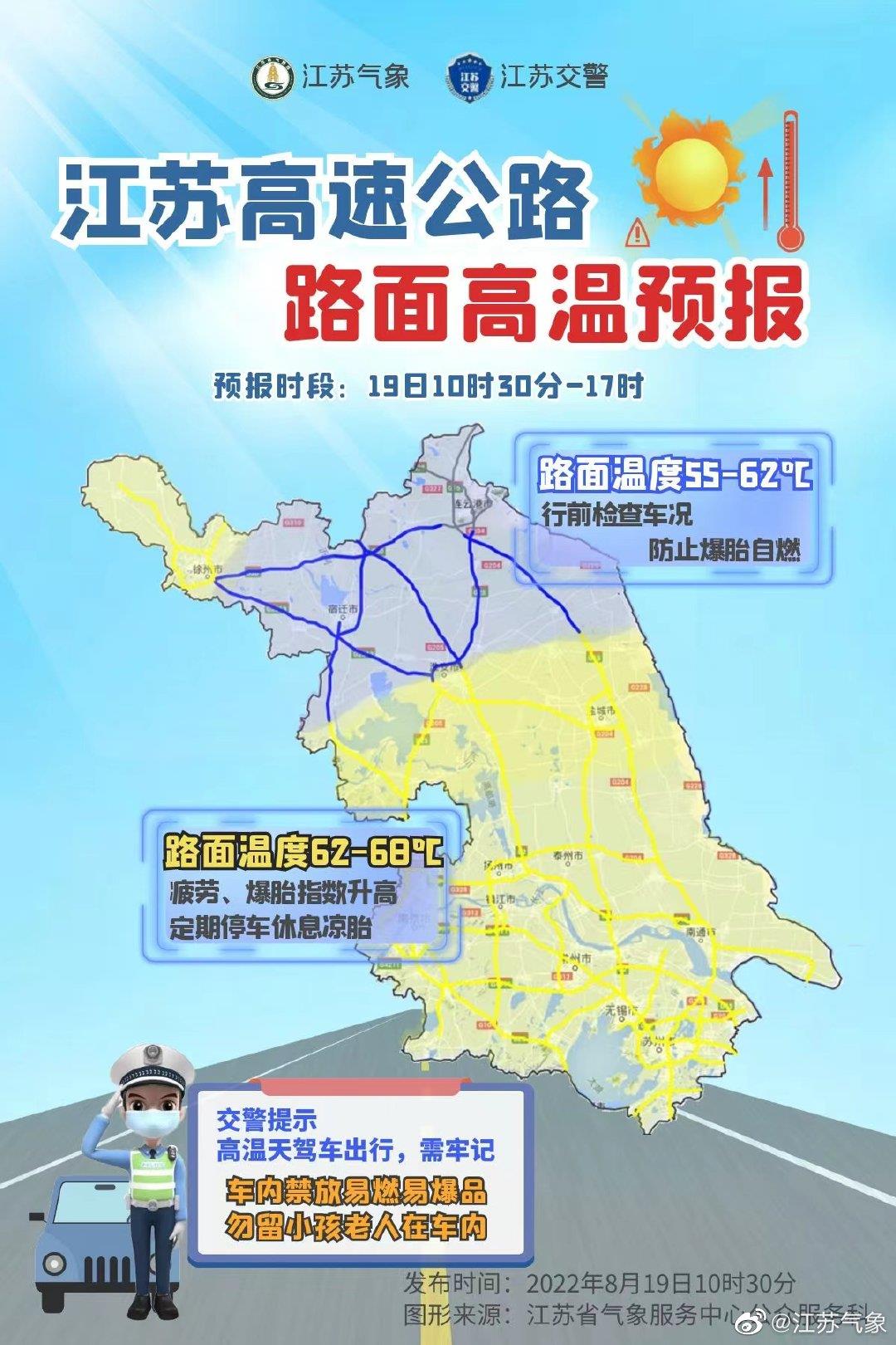 江苏发布全国首个省级路面高温预报,部分路段地表温度将达68℃