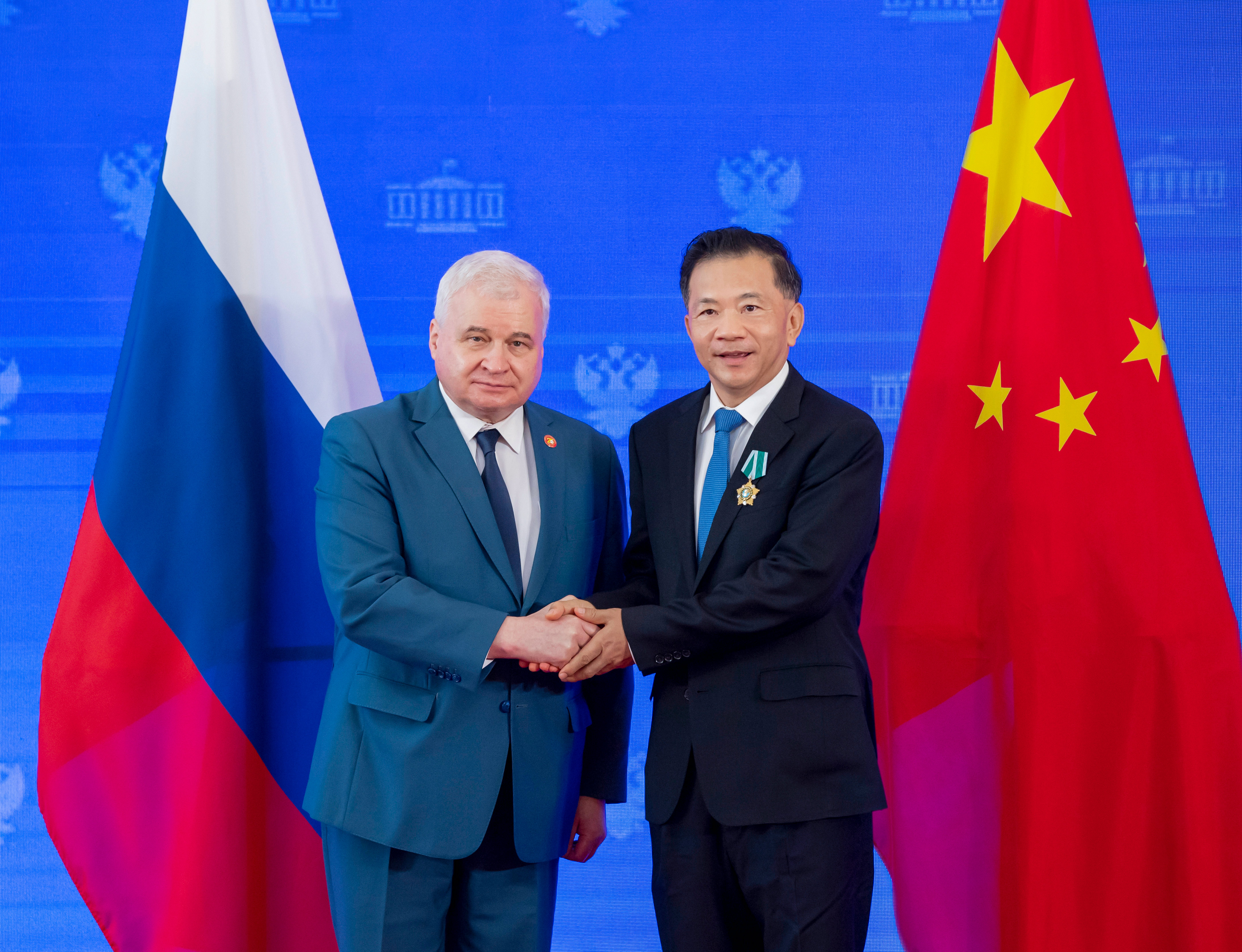 “中俄影像交流展播活动”启动活动结束后,俄罗斯驻华使馆举行授勋仪式,慎海雄接受俄方授予的俄罗斯“友谊勋章”。杰尼索夫大使宣读了俄罗斯总统令,并代表俄罗斯政府向慎海雄颁授勋章和证书,以表彰他为推动俄中文化交流和两国人民友谊所作出的贡献。