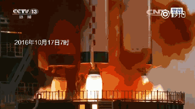 10月17日7时30分,搭载着神舟十一号载人飞船的长征二号F遥十一运载火箭在酒泉卫星发射中心点火升空。新华社记者李刚摄