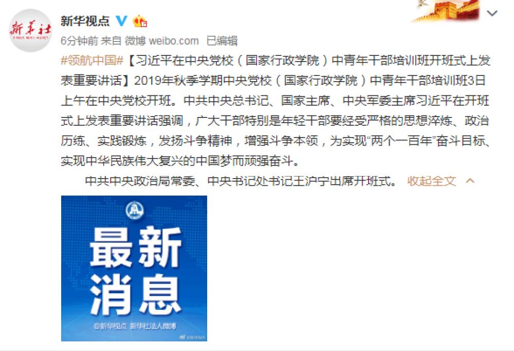 习近平在中央党校中青年干部培训班开班式上发表重要讲话