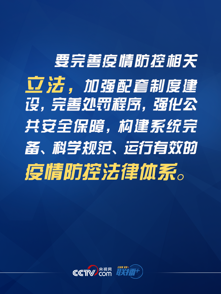 联播+2月5日下午,习近平主持召开中央全面依法治国委员会第三次会议强调,要在党中央集中统一领导下,始终把人民群众生命安全和身体健康放在第一位,从立法、执法、司法、守法各环节发力,全面提高依法防控、依法治理能力,为疫情防控工作提供有力法治保障。