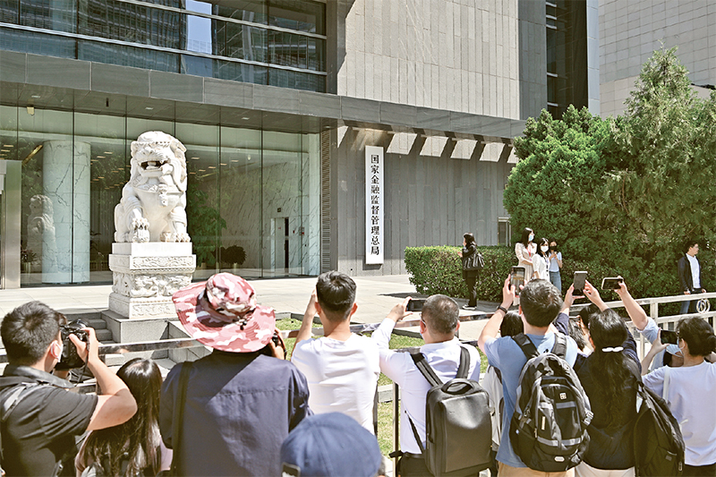 2023年5月18日,国家金融监督管理总局正式挂牌,我国金融监管机构改革迈出重要一步。图为当日媒体记者在国家金融监督管理总局门前拍摄。 新华社记者 李鑫/摄