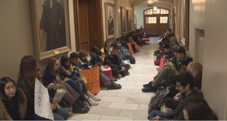 多伦多大学市中心校区(UTSG)的BA教学楼(Bahen Centre for Information Technology)再度发生学生跳楼案,而校方依旧采取“冷处理”方式。由于不满校方对学生心理健康问题的无动于衷,3月18日,数十名学生聚集在校长办公室旁,举行集会作沉默抗议。