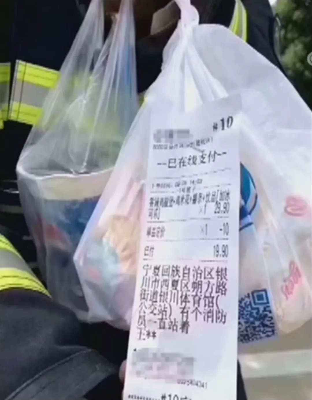 近日,宁夏银川一名正在执行消防任务的消防员,突然收到一份外卖。外卖小票上写着:“银川体育馆公交站,有个消防员一直站着。”这到底是怎么回事?