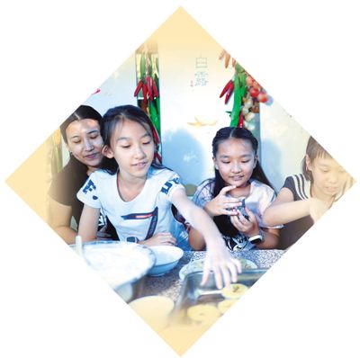 今年9岁的曾佳琪吃过的美食不少,自己动手做桑叶饼还是第一次。“首先采摘嫩桑叶,洗干净,随后细细切碎……”按照厨艺师的讲解,她和小朋友们纷纷动手忙活起来,一步步认真操作。菜叶准备好后,加入鸡蛋放少许盐,与面和成糊状,擀成圆形薄饼,然后将薄饼放入锅内,烙至微黄。