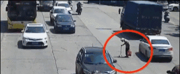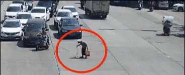 为老人挡住巨大车流