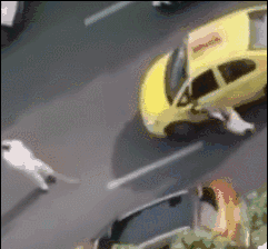 黄色轿车司机不得已往左打方向