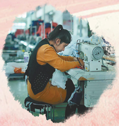 疏附县依锦诚服装有限公司女工古再丽努尔熟练操作缝纫机。吴雁摄