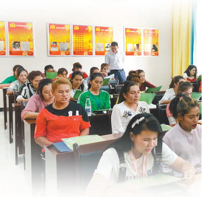 刘波决定,先解决交流障碍的问题。2016年6月,东纯兴公司聘请专职教师办起语言培训班。60名少数民族女员工走进课堂,一周学习5至10个小时。两年来,随着生产规模的逐渐扩大,东纯兴公司的语言培训班由最初的3个班增加到24个班,参训人数超过1600人,成为南疆地区规模最大的国家通用语言培训班。