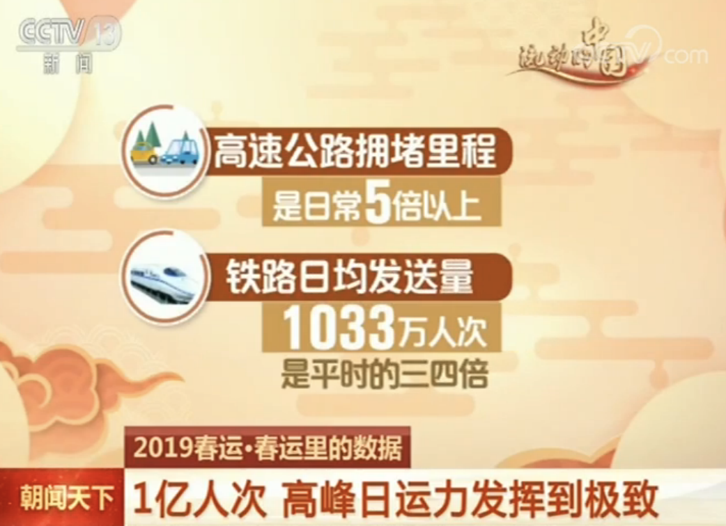 其中,高速公路拥堵里程是日常的5倍以上;铁路日均发送量1033万人次,是平时的三四倍;各大航空公司加密航班,单国航、东航、南航三大航空公司春运期间就要增加15000多班次。