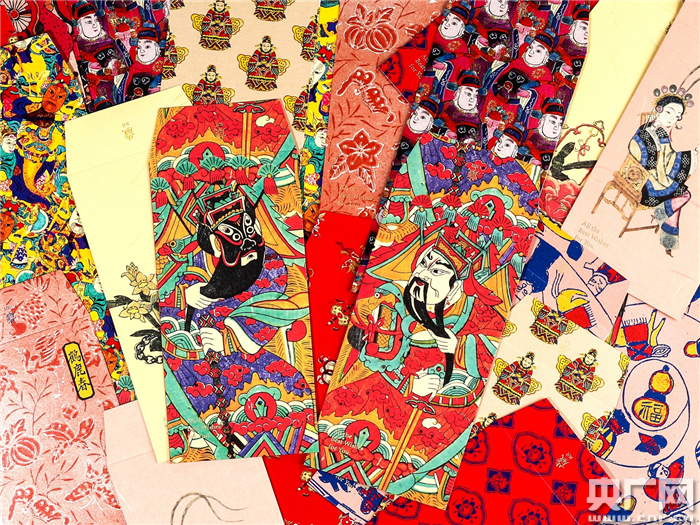 李宏震团队设计的门神系列红包。(央广网记者 孙冰洁 摄)